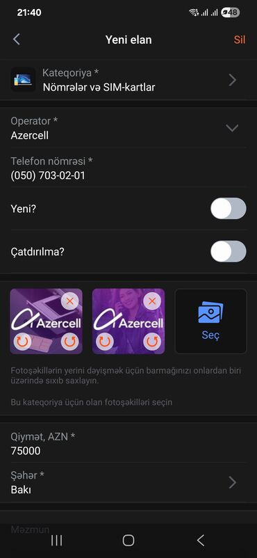 Nömrə: ( 099 ) ( 4660505 ), Yeni