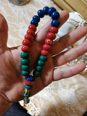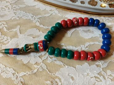 - Azərbaycan bayrağının rənglərində (mavi-qırmızı-yaşıl) böyük, parlaq muncuqlu təsbeh.