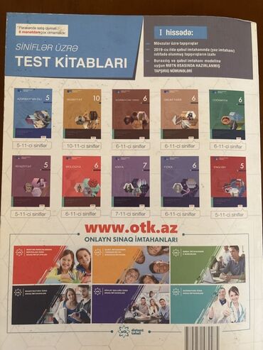 - Arxa cildə siniflər üzrə digər fənn test kitablarının kataloqu və www.otk.az onlayn sınaq imtahanları barədə məlumat