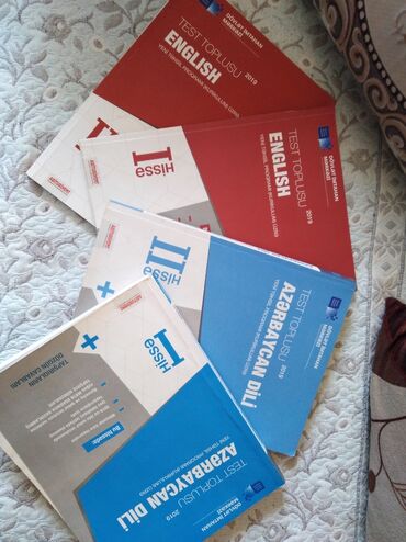 YeniAzərbaycan dili və İngilis dili I və II hissə test topluları. Hər birinin arxasında cavablar var. Kitablar səliqə ilə işlənib, üzərində heç bir qeyd yoxdur