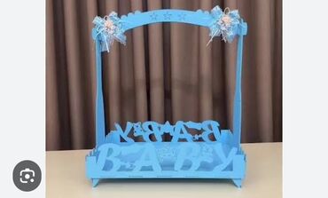 Mavi rəngdə “BABY” yazılı dekorativ təqdimat səbəti/standı 4 eded xonca satiwi hamsi birlikde 25 manatdi unvan sabuncudan goture bilersiz