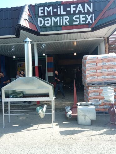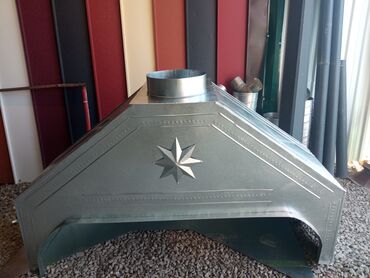 Metaldan istehsal olunan mangal və tüstü toplayıcı başlıqlar - Material: qalınlığı uyğunlaşdırılmış sinklənmiş və boyalı metal - Mangal: üstündə geniş tüstü toplayan başlıq və baca çıxışı, taxta/o...
