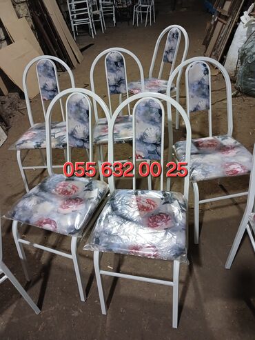 Metal karkaslı yemək/kafe stulları - Material: qalın metal boru karkas, toz boya ilə rənglənmiş. - Oturacaq: yumşaq süngərli, süni dəridən/parçadan üzlük; təmizlənməsi asan. - Bel hissəsi: erqonom...