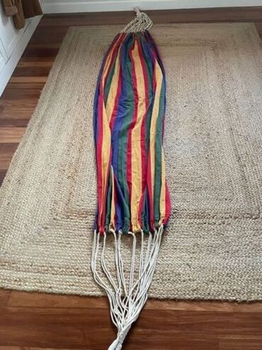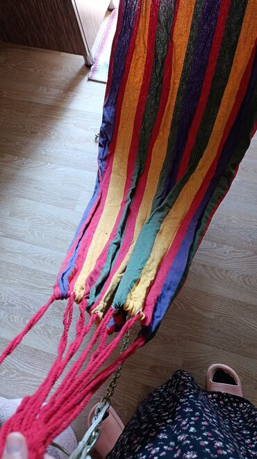 Bu, taxta çubuqları olan bir növ hörülmüş tor hamakdır. Hamak rahatlamaq üçün nəzərdə tutulmuşdur və evdə və ya açıq havada istifadə edilə bilər. Tor dizaynı dərili rəngli ipliklərdən hazırlanmışdı...