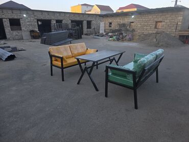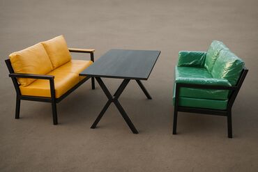 Məhsul: Hündür bar taburetləri – 2 ədəd Xüsusiyyətlər: - Material: möhkəm metal karkas, qara rəng - Oturacaq: dairəvi formalı, sarı tonlarda parlaq səth - Arxalıq: nazik metal çərçivə ilə qısa söy...