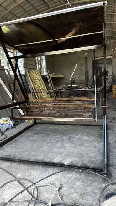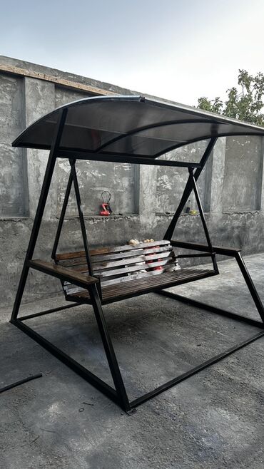 Bağ yelləncəyi – metal karkaslı, taxta oturacaqlı - Açıq havada istifadəyə uyğun, möhkəm metal konstruksiya - 3 nəfər üçün geniş oturacaq: enli taxta lamellər, arxalıqla - Çərçivə sərt dayaq ayaql...
