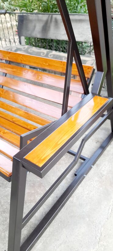 Bağ yelləncəyi - Karkas: möhkəm metal konstruksiya, yaşıl rəngdə boyalı - Oturacaq: taxta lamellərdən, 4 nəfərlik genişlik - Asqı sistemi: zəncirli bərkidilmə, yüngül və sakit yellənmə - Dayaq: sa...