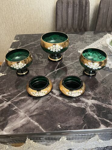 1 güldan 1 meyvə qabi 2 konfet qabi 6 rumka Xrustal dir istifadə olunmayib