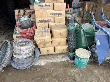 - Mağazada əlavə tikinti ləvazimatları da mövcuddur: mismarlar (qutulu), əl arabaları, bitum əsaslı ruberoid rulonları, vedrələr və alətlər.