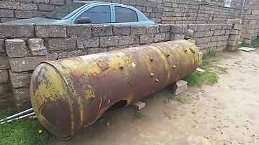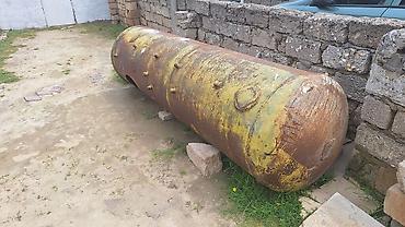 Böyük həcmli dəmir/poçunkdan hazırlanmış silindrik yeraltı/yerüstü çən. Xüsusiyyətlər: - Forma: silindr, hər iki ucu qapaqlı kürəvi başlıqlar - Material: qalın divarlı metaldan qaynaq birləşməli k...