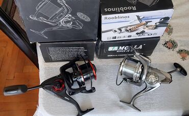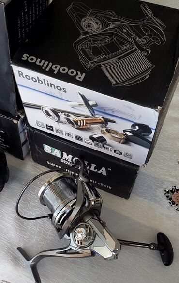Balıqçılıq üçün 2 ədəd qamış və çarx seti - Uzun gövdəli iki ədəd qamış: qrafit/kompozit gövdə, keçid halqaları ilə. Ucları həssas, birində parlaq sarı işarələmə var. - Hər ikisi mavi rəngli fırla...