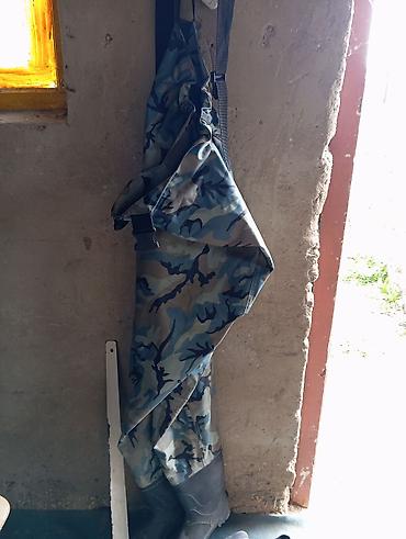 - Geyim: Gövdədən keçən saxlanc qayışı olan kamuflyaj naxışlı balıqçı kombinezonu (vader). Aşağı hissəsi rezin çəkmə ilə bütöv formadadır, su keçirmədən çayda/göldə rahat hərəkət etməyə imkan verir. Qoltuq altından tənzimlənən askılar.