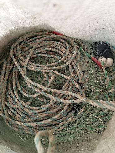 - Tor: İncə gözdən ibarət balıq toru, kənarlarında üzən və batırıcı elementlər görünür. Torla birlikdə möhkəm, bükülü kəndir (tros) verilir – yaşıl/qəhvəyi rəngdə. Çay, göl və sahilyanı ov üçün uyğundur.