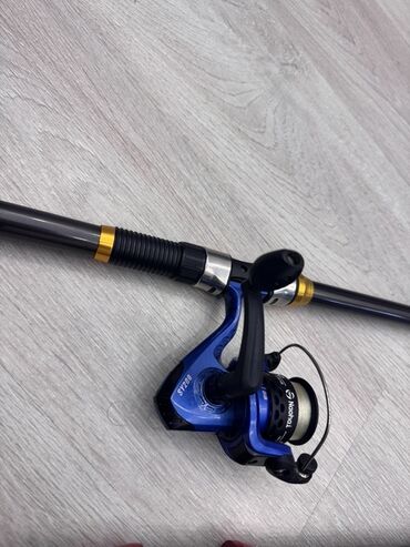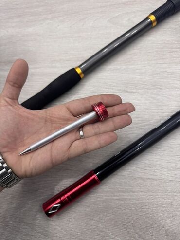 Tam fotoşəkillərdə göstərilən aksesuarlarla birlikdə. Şəkillərdə olanlar: 2 qamış, 2 spinning çarxı, qırmızı alt hissəyə vintlənən metal torpaq dirəyi.