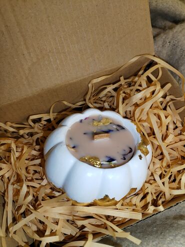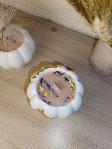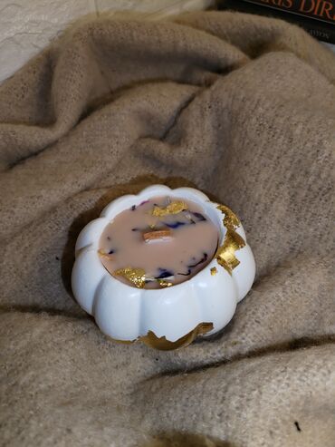 Dekorativ şam dəsti – əl işi -ətir notları :sandal, yasəmən, apelsin - Material:təbii soya mumu - Stil: minimal və modern, qızılı aksentlərlə lüks görün...
