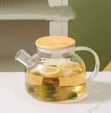 1 litr, seffav, taxta kriska, keyfiyyetli caynikdi. 8 eded qalib