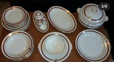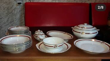 Qədim, 18 person yemək dəsti, Çexslovakiyanındır.Bütün predmetləri vardır sadəcə bir hissəsini görüntü üçün qoymuşam, digər hissələri bağlamadadır. Duz qabısından supnikinə qədər bütün predmetləri ...