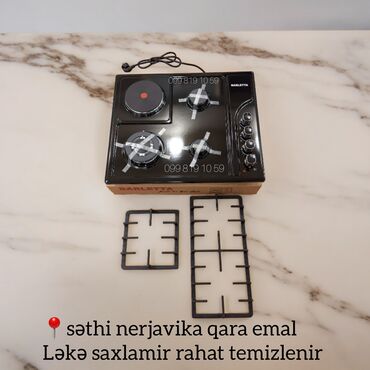 - 4 ocaq gözü: 3 qazlı + 1 elektrikli göz (qırmızı indikatorlu zona)