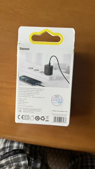 Qutuda şarj adaptoru göstərilir; şarj kabeli ayrıca tələb oluna bilər (qutuda kabel görünmür).