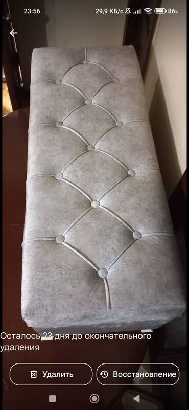 Məhsul: Yumşaq oturacaqlı şkaf-oturacaq (puf/benç) - Dizayn: Kapitone tikişli, zərif dekorativ düymələrlə işlənmiş oturacaq hissəsi və yanları. Fərqli modellər: düzbucaqlı və oval formalar. - Mate...