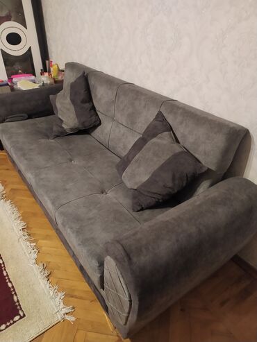 Kunc divan uqlavoy divan bazali divan divan krovat kreslo krovat aclan divan Məhsul: L‑şəkilli yumşaq künc divan - Rəng: boz (velür effektli parça) - Dizayn: müasir, təmiz xətli; oturacaq və arxa ...