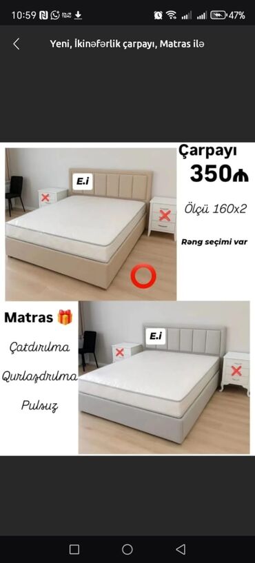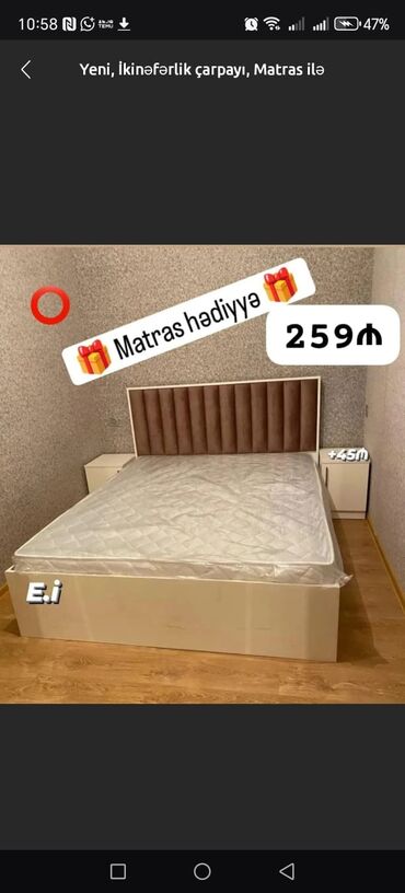 Yeni, İkinəfərlik çarpayı, Bazasız, Matras ilə, Siyirməsiz, Azərbaycan