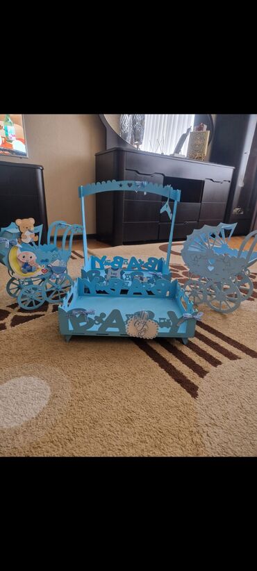- 3 hissədən ibarət: “Baby” yazılı dekorativ stend/çərcivə, iki ədəd bəbək arabası formasında dekor.