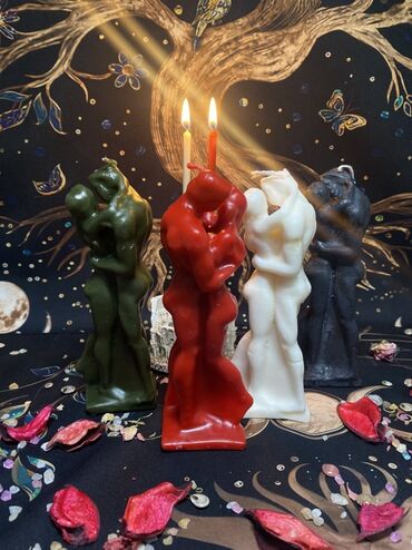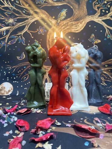 Məhsul: Bədii fiqurlu şamlar – “Sarılma” seriyası - Dizayn: Silindr formalı gövdəni qucaqlayan cüt fiqurla heykəlsayağı işlənmiş kompozisiya. Zərif paltar qatları, əsasda dekorativ kürəciklər və d...