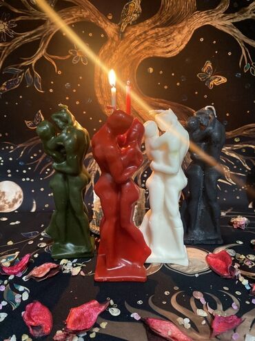 Məhsul: Cütlük fiqurlu dekorativ şamlar Təsvir: - Romantik sarılma pozasında cütlük siluetləri formasında hazırlanmış dekorativ şamlar. - Rəng variantları: qara, ağ, qırmızı və yaşıl (şəkillərdə g...