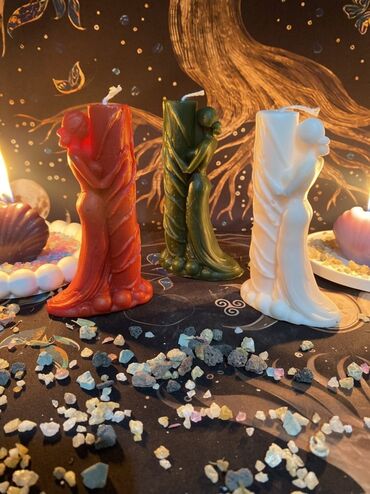 Məhsul: Bədii fiqurlu şamlar – qucaqlaşan cütlük forması Təsvir: - Heykəlvari dizayn: İki nəfərin qucaqlaşmasını realist xətlər və plastika ilə əks etdirən dekorativ şam. - Rənglər: Yaşıl, qırmızı...