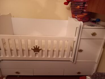 Uşaq otağı üçün həm beşik, həm də geyim/aksessuar saxlama funksiyasını birləşdirən praktik mebel dəsti.