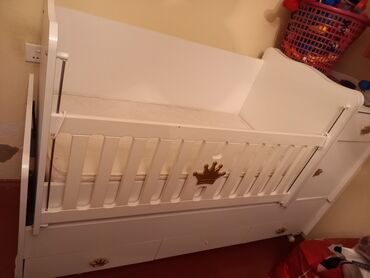 Ağ rəngli uşaq beşiyi – komod və alt çekmecələrlə birlikdə modul sistem.