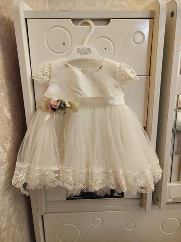 Zərif krem rəngli qız uşağı üçün ziyafət/libas dəsti.
