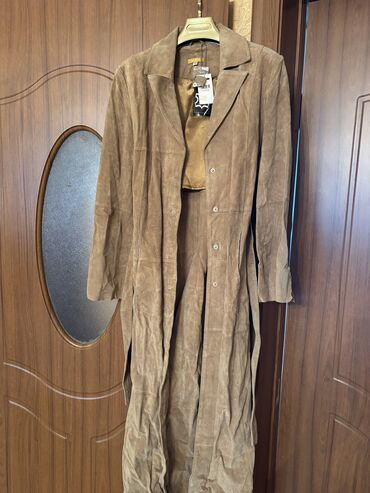 Новое кожаное(замша)пальто из Франции.Очень дорогое.Размер М..Немного помялось.Yeni temiz deri(zamwa)palto.Fransiyadan cox baha alinib.Razmer M.Wekilda yaxsi duwmeyib.Çox qozeldi