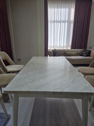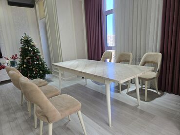 Qonaq otağı üçün, Yeni, Açılmayan, Dördbucaq masa, 6 stul