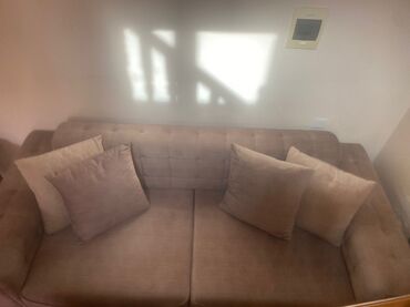 Bej rəngli yumşaq parçadan 3 yerlik divan