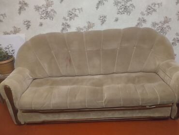 Bej rəngli mebel dəsti: 1 ədəd üçnəfərlik divan və 2 ədəd kreslo.