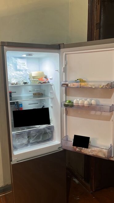 - İç quruluş: LED işıqlandırma, tənzimlənən şüşə rəflər, tərəvəz/yeşillik üçün iri çekmece, qapıda yumurta üçün tutacaq və geniş saxlama rəfləri