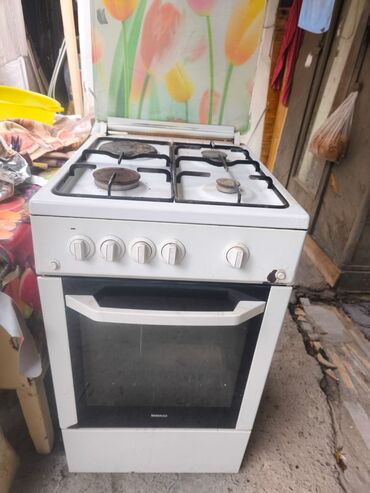 ALEV quraşdırılan qaz paneli - 3 qaz ocağı + 1 elektrikli göz - Sağda mexaniki idarə paneli: 4 ədəd fırlanan düymə, alov tənzimlənməsi -ruçkaları istiliye davamli metal yanmaz erimez - reşotkala...