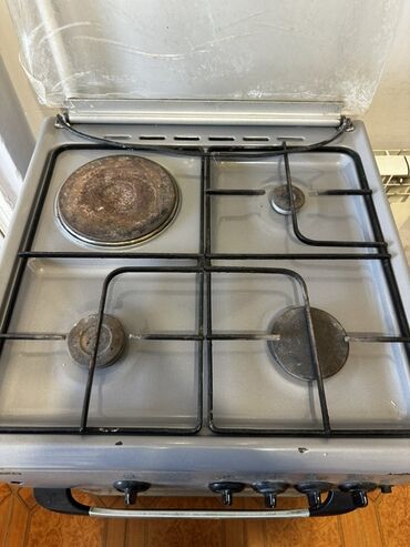 - Üst hissə: 3 qaz ocağı + 1 elektrikli göz (sol ön tərəf), çıxarılan dəmir barmaqlıq.