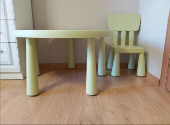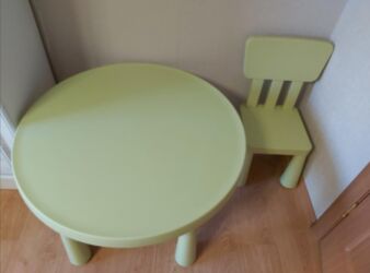 EndirimsizBelə stol və stul IKEA-dandır, sadəcə açıq yaşıl rəngdədir.