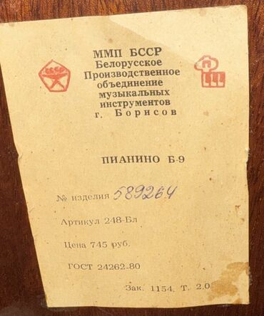 - İstehsalçı: Belarusiya Musiqi Alətləri İstehsal Birliyi, Borisov (etiketdə göstərilib: GOST 24262-80, artikul 248-Бл, məmulat №589264).