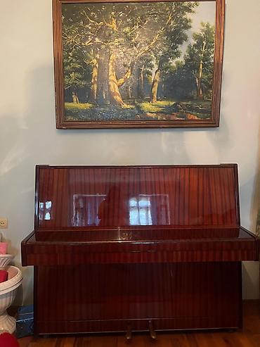 Ölçülər təxmini: standart upright hündürlüyü (fotolara əsasən). Alətin ümumi görünüşü baxımlıdır, səslənmə və sazlama üçün profesional ustaya uyğunlaşdıra bilən klassik akustik konstruksiyadır.