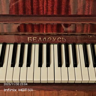 Upright piano – “Belarus” (Беларусь) markalı, klassik akustik model. Xüsusiyyətlər: - Korpus: parlaq laklı, tünd qəhvəyi ağac teksturası - Klaviatura: tam ölçülü 88 klaviş (ağ və qara), üst qapaq ...