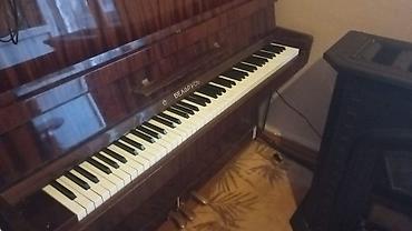 - Korpus: parlaq tünd qəhvəyi ağac örtüyü, klassik düz (upright) konstruksiya