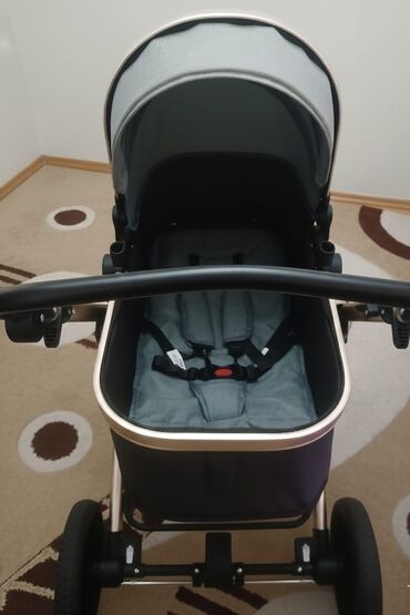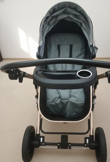 Şəhər içində gəzinti və uzun yürüşlər üçün uyğun, yeni doğulandan etibarən istifadə oluna bilən funksional uşaq arabası. Rəng: boz/qaranlıq tonlarla qızılı çərçivə. Marka: Belecoo.