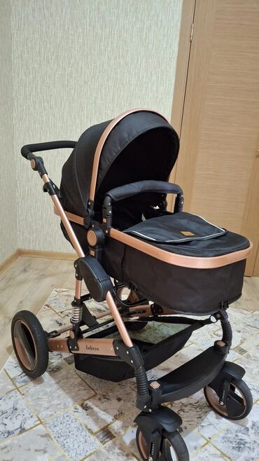 Belecoo uşaq arabası - Rəng: qara, qızılı çərçivə ilə - Tip: transformasiya olunan beşik/oturacaq modullu səbət - Güclü alüminium çərçivə, tənzimlənən tutacaq (ekodəri örtük) - Geniş, qapaqlı beşi...55 AZN