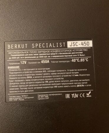 Berkut Specialist JSC-450 modeli, avtomobil akkumulyatorları üçün nəzərdə tutulmuş kondensator əsaslı işəsalma cihazıdır. Bu cihaz, benzin mühərrikləri 4500 sm³-ə qədər və dizel mühərrikləri 3000 sm³-ə qədər olan bütün növ nəqliyyat vasitələri üçün uyğundur. Cihaz 12 volt gərginlikdə işləyir və 450A işəsalma cərəyanı təmin edir. Geniş işləmə temperaturu diapazonu (-40°C-dən +65°C-ə qədər) sayəsində müxtəlif hava şəraitlərində istifadə edilə bilər. Qütblüyün düzgün qoşulmasını təmin etmək üçün xəbərdarlıq funksiyası mövcuddur. Göstəricilər vasitəsilə akkumulyatorun doldurma səviyyəsini izləmək mümkündür. "START" düyməsinə basıldıqdan sonra 1-2 dəqiqə ərzində cihaz batareyanı doldurur və mühərriki işə salmağa hazır olur. Qış aylarında dizel avtomobilləri üçün əlavə qızdırıcı şamların qızdırılması funksiyası mövcuddur. Cihazın yüngül və kompakt dizaynı onu istənilən avtomobildə saxlamaq üçün əlverişli edir.
