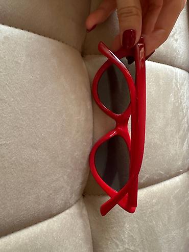 Qara rəngdə, düzbucaqlı formalı günəş eynəyi. Eynəyin qolları tünd qırmızı rəngdədir. Bu eynəklər günəş şüalarından qorunmaq üçün idealdır və həm qadınlar, həm də kişilər tərəfindən istifadə edilə ...