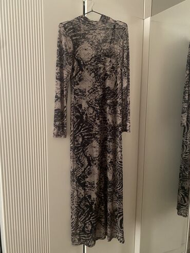Rinascimento qadın paltarı - Rəng: qara - Dizayn: ön hissəsi nazik ağ xətli (pinstraip) parça ilə, arxa hissəsi tam qara - Yaxa: yuvarlaq - Qol: qısa - Uzunluq: midi - Kəsim: bədənə oturan siluet,...